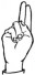 На ћирилици написано ДЕНИС ВУЈАНЧЕВИЋ састоји се из 15 слова [?]. Исписано ћириличном једноручном азбуком за глувонеме: